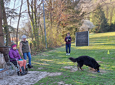 Das Gehen am Rollstuhl und das Vorführen einer Aktivität am Rollstuhl, welche sich für einen Therapiehundeeinsatz eignen würde, sind nur zwei der Herausforderungen.